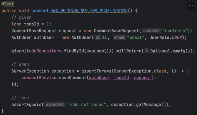 2. findById (anyLong) 부분을 맞춰주기위해 findById(todoId) 로 수정해 줍니다.