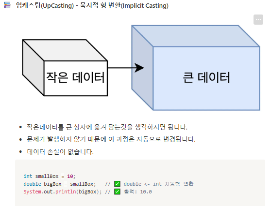 - 업캐스팅 (작은 데이터를 큰 상자에 넣는 개념)