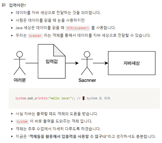 - 자바의 세계는 모두 객체(클래스)로 이루어져 있습니다.