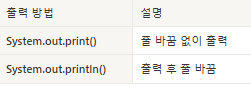 - 개행문자를 출력하면 줄바꿈 기능을 수행합니다.
